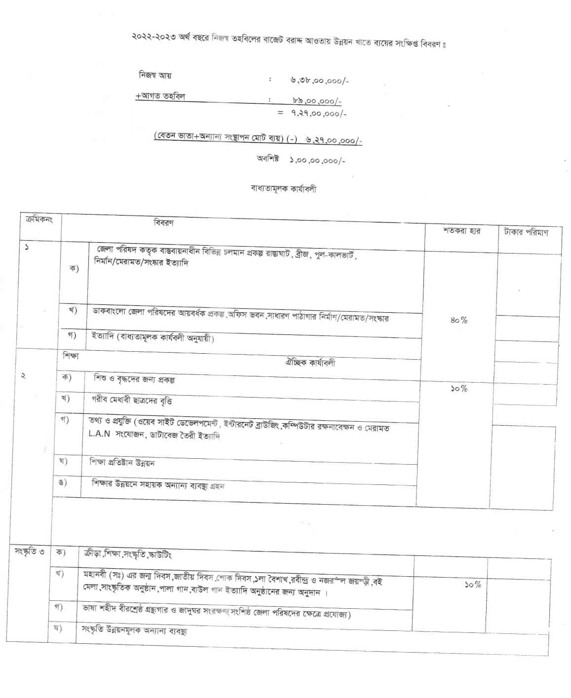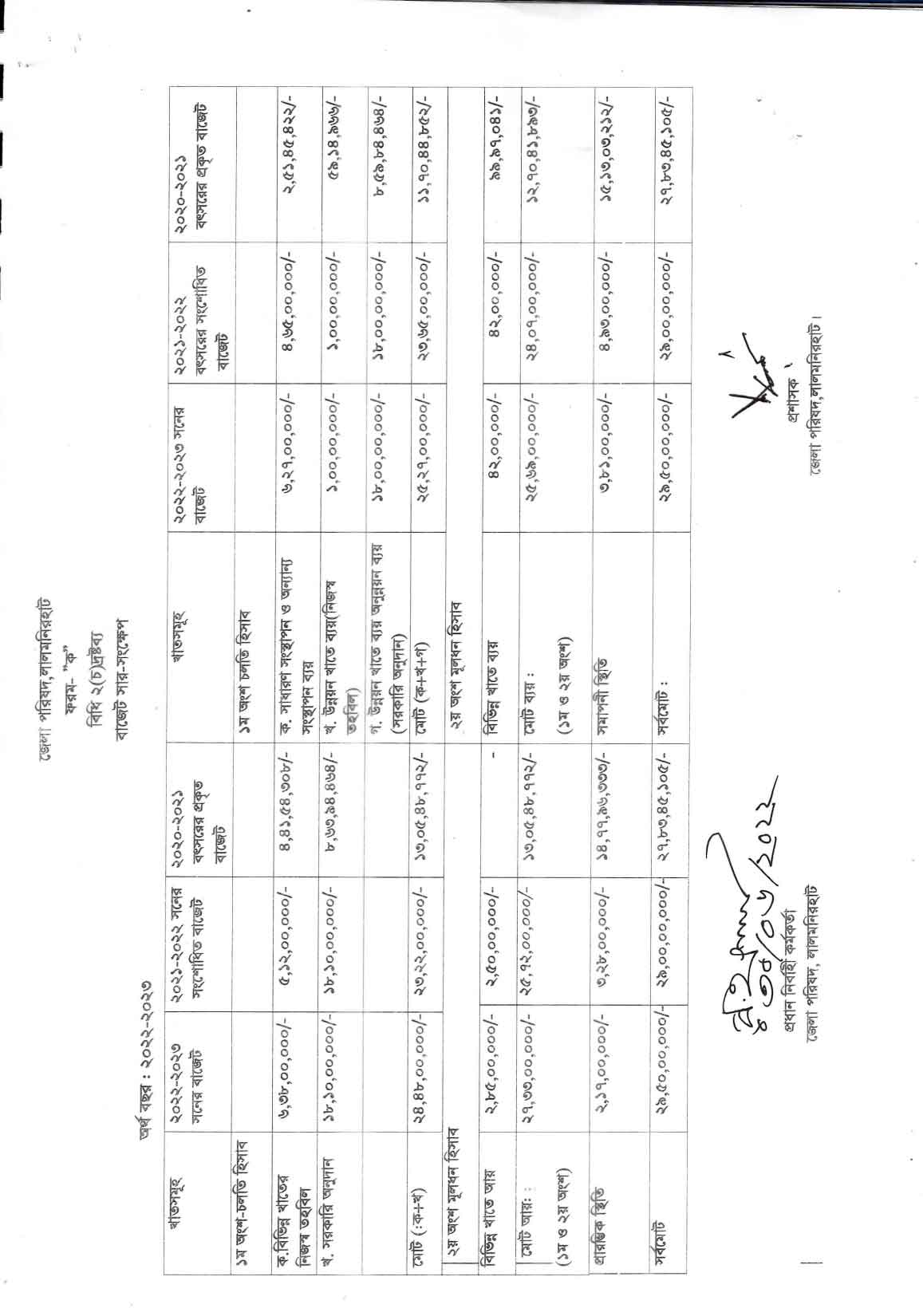 লালমনিরহাট জেলা পরিষদ এর বাজেট ২০২২ – ২০২৩ অর্থ বছর